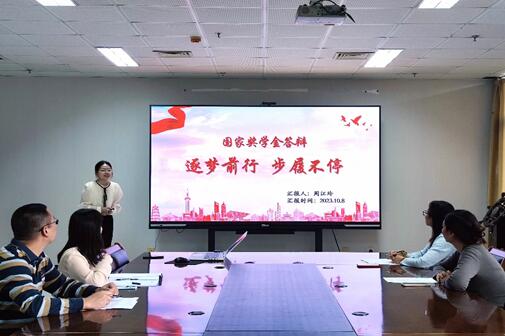 为进一步推进公司学风建设,充分发挥国家奖学金的引领作用,2023年10月8日,英国365集团公司在敬业楼912举办了国家奖学金评审答辩会。本次答辩会由外国语公司党委副书记范迎波、员工科郑清军、李桂莉和刘欣畅老师担任评委。
